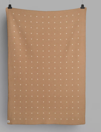Tweed-Plaid Pastille dunkelbeige Weiß/ Punkte 135x200 Bergschafwolle